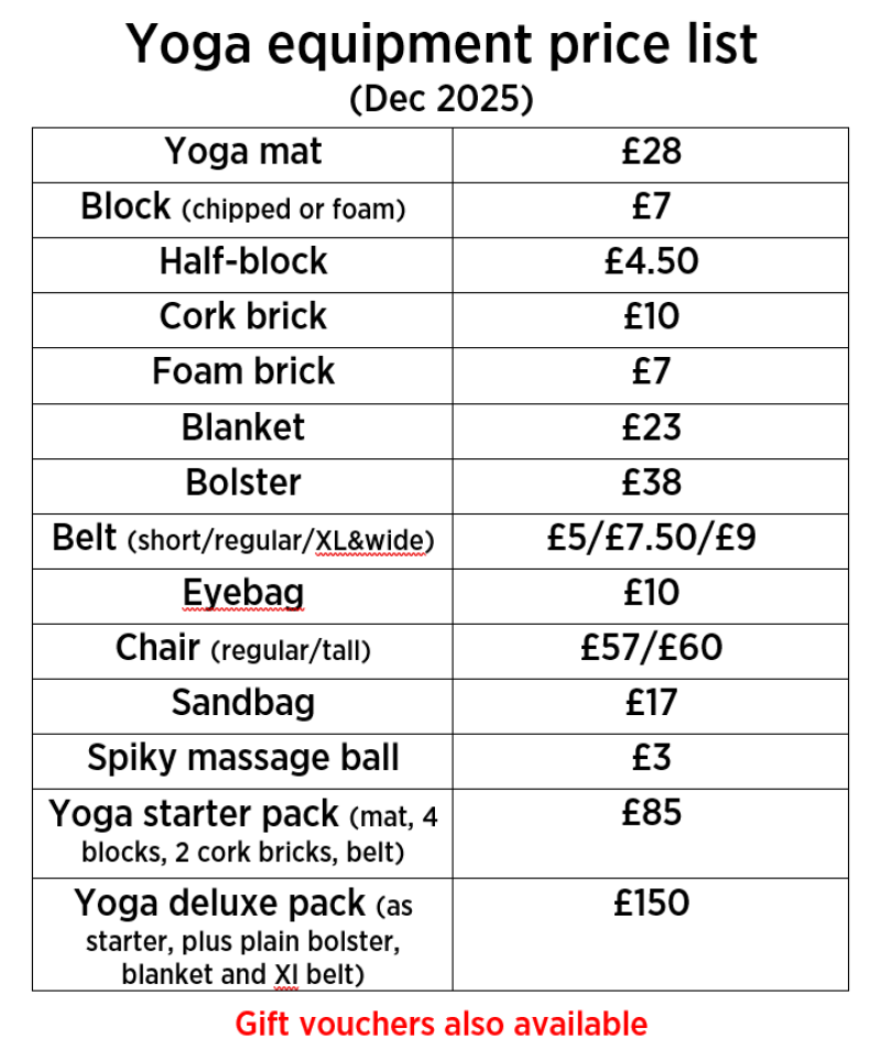 You can purchase yoga equipment for your home practice or for in-person classes at Maitri Studio. This is aimed at our students and is for collection at the studio only. PRICE UPDATE December 2025
